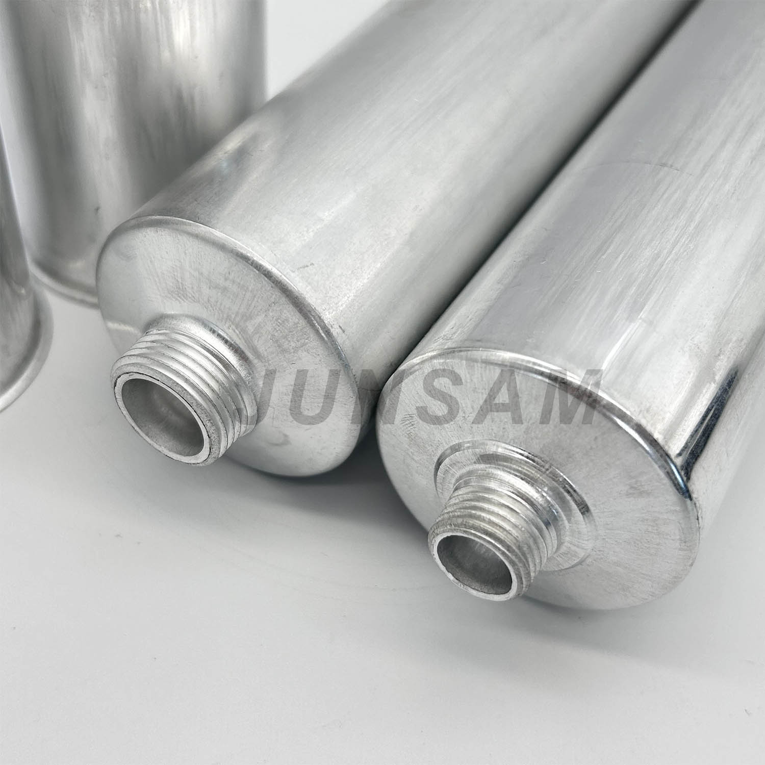 Junsam specializes in manufacturing high-quality aluminum cartridge tube, which is ideal for various industries such as automotive, construction, and public works. Our standard cartridges, measuring 46.8 mm x 215 mm (1 27/32 inch x 8 15/32 inch), contain sealants, polyurethane glues, and hybrid polyurethanes. These aluminum cartridges offer complete protection for the contents and are 100% recyclable, providing a sustainable packaging solution.